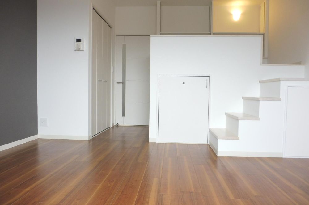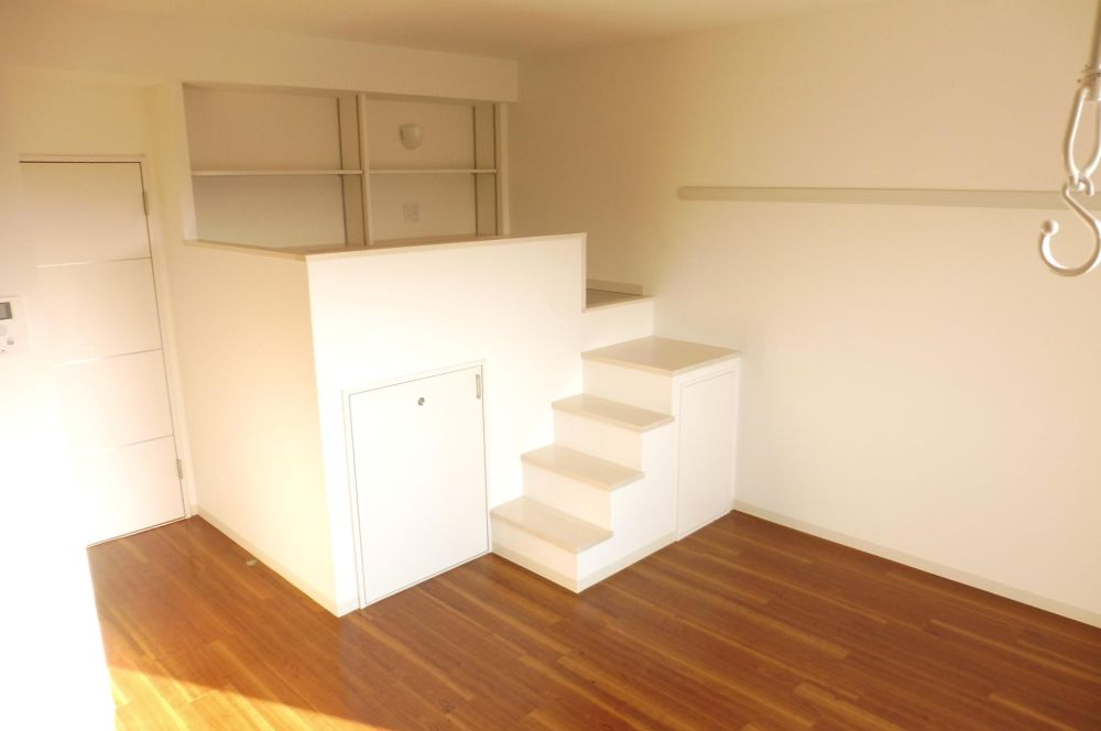 駿河区大谷ロフトスペース付のおススメ1K☆RC造、オートロック付で安心クローゼットの他にロフト下や階段下にも収納のある大収納タイプ!!エアコン、ガスコンロ、オートロックと付いてておすすめです