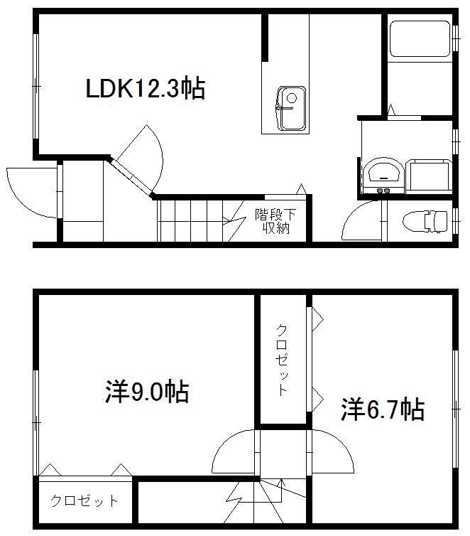 仲介手数料不要 原島町の2階建てテラスハウス! 角部屋、カンターキッチンスタイルのLDK。2F南洋間にもエアコンあります!