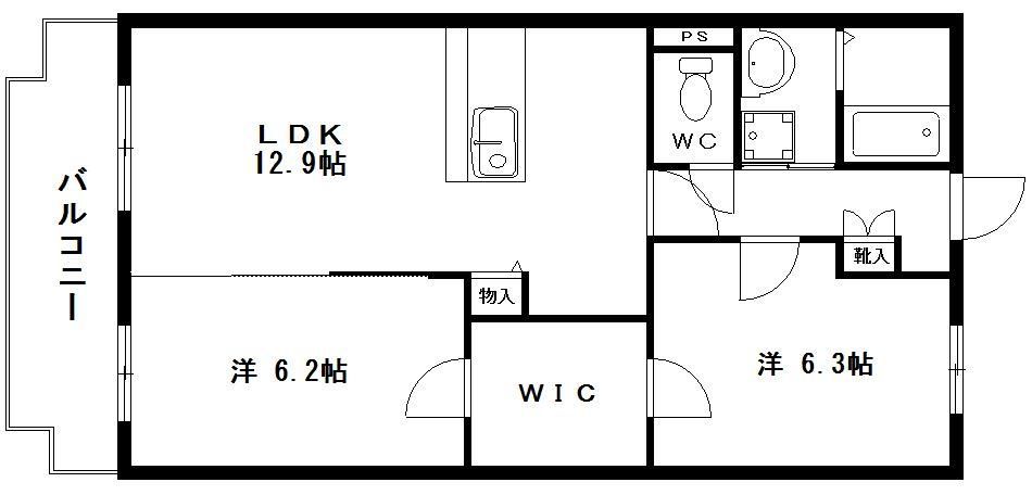 2LDK( LDK12.9畳/洋室6.2畳/洋室6.3畳 ) |