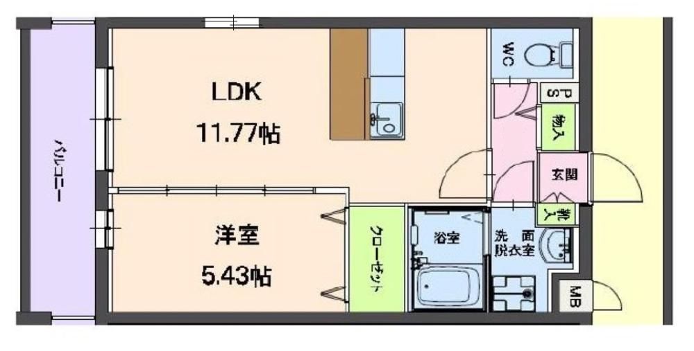 1LDK( LDK11.77畳/洋室5.43畳 ) |