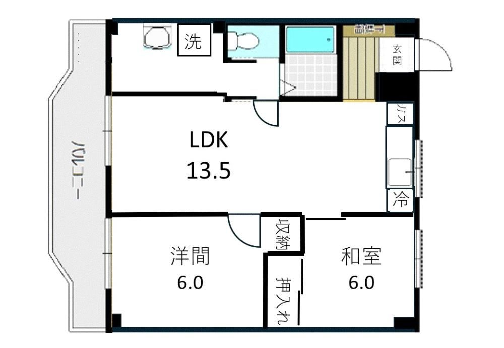 2LDK( 洋室6畳/和室4.5畳/LDK13.5畳 ) |