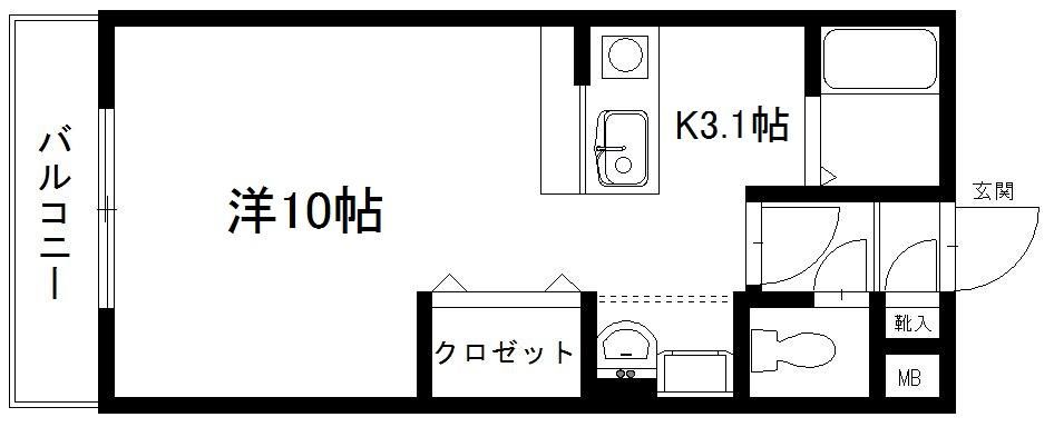 仲介手数料不要 高丘北2丁目のネット無料1K! 洋間10帖と広めの1Kの最上階!ゆったりと一人暮らしを満喫したい方にお勧め!